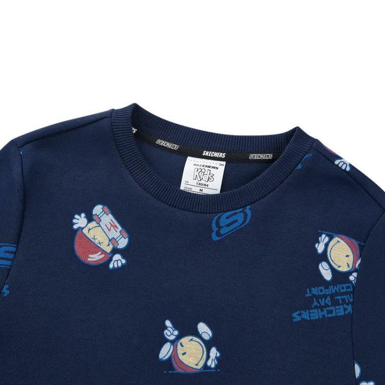 Skechers Kids x SMILEYWORLD Свитшот Многоцветный Смайлик Парк развлечений Полный принт Синий Основа 04SC