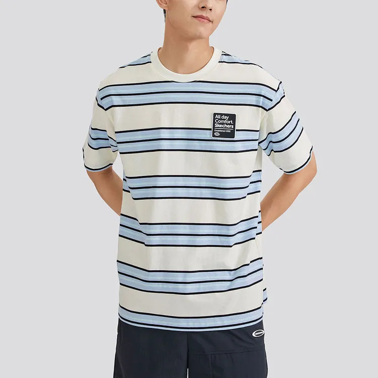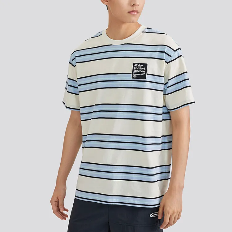 Skechers T-Shirt Унисекс Белый Подкладочная ткань Синий Смешанные Полосы
