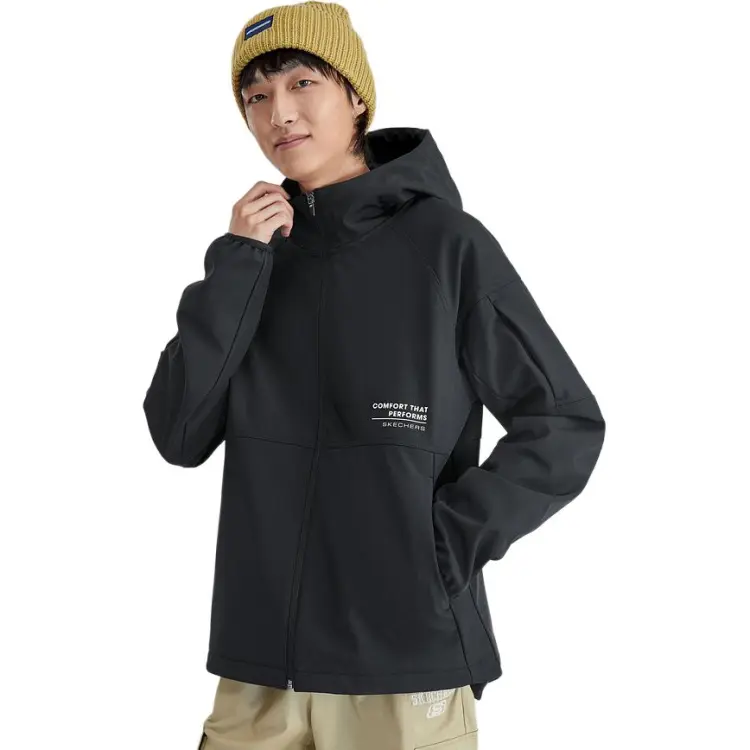 Skechers Водонепроницаемый Ветрозащитный And Вода Репеллент Ветровка Мужской Угольно-черный