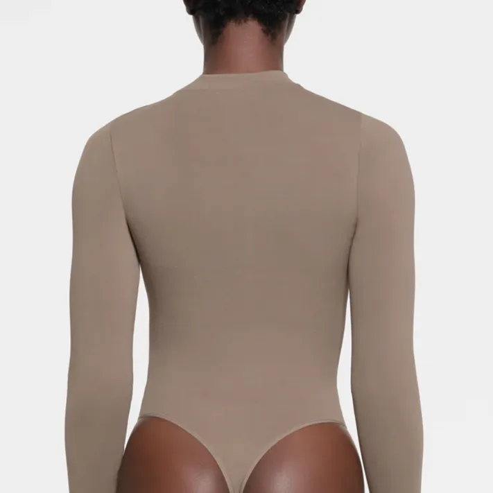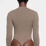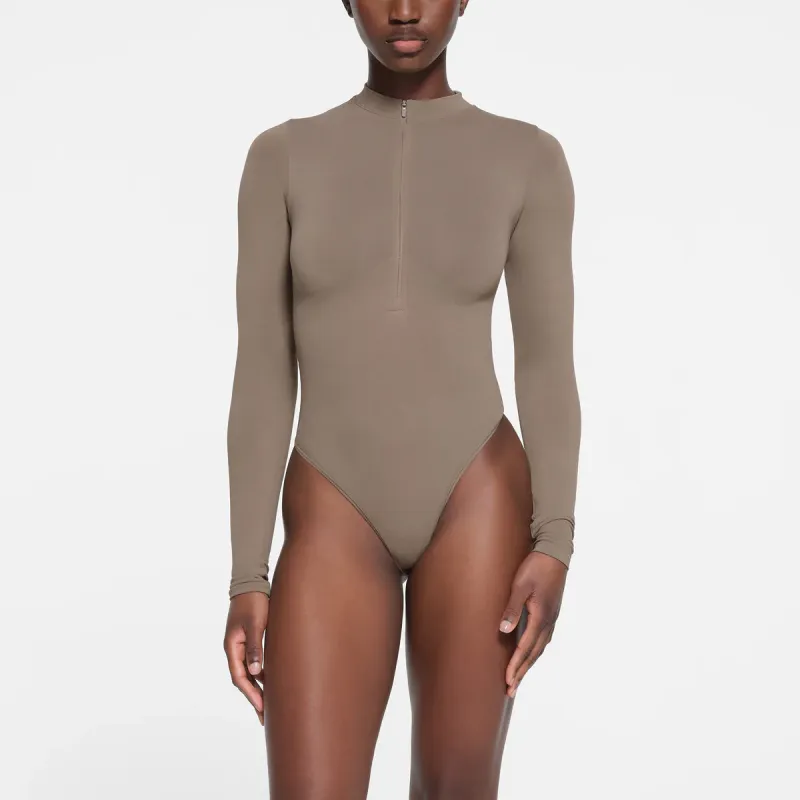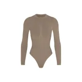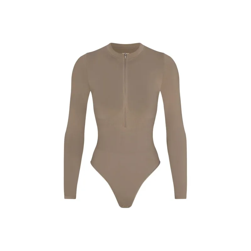 SKIMS Тень Нейлон ZIP Передняя часть Длинный рукав Комбинезон Bodysuit Женские Трюфель Truffle
