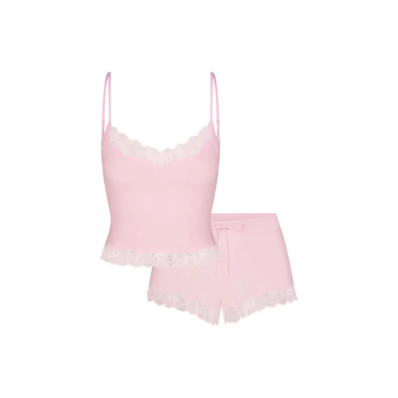 SKIMS Хлопок Кружево CAMI и Короткий Комплект Пижамный Набор Женские Вишневый цветок Вишневый цветок
