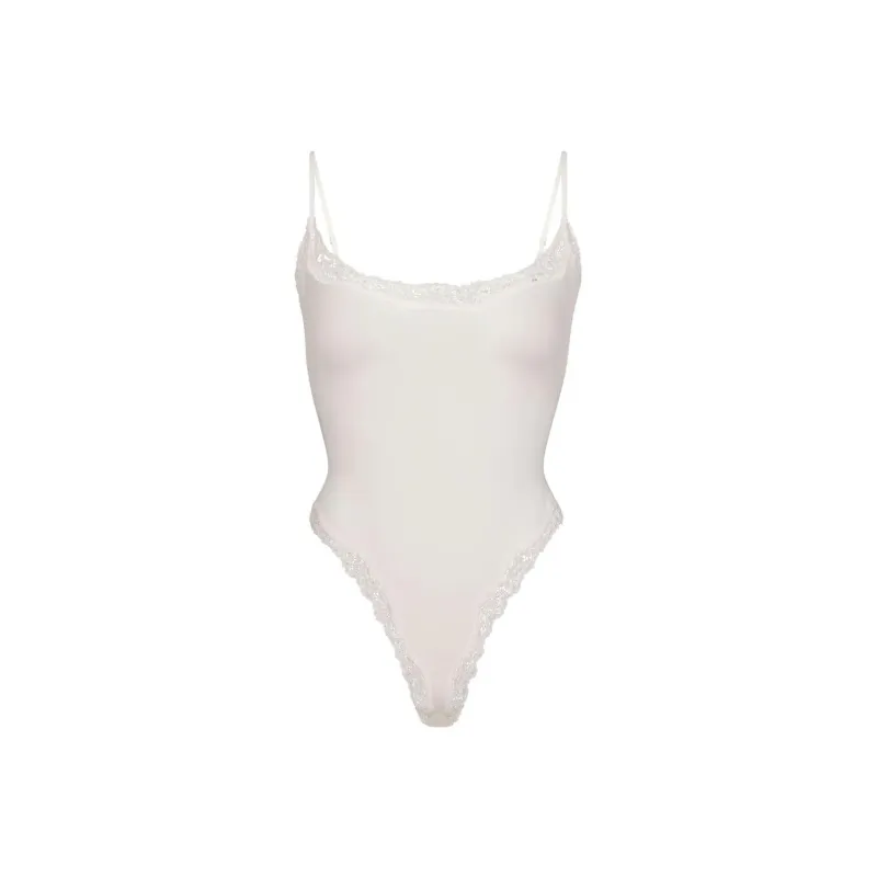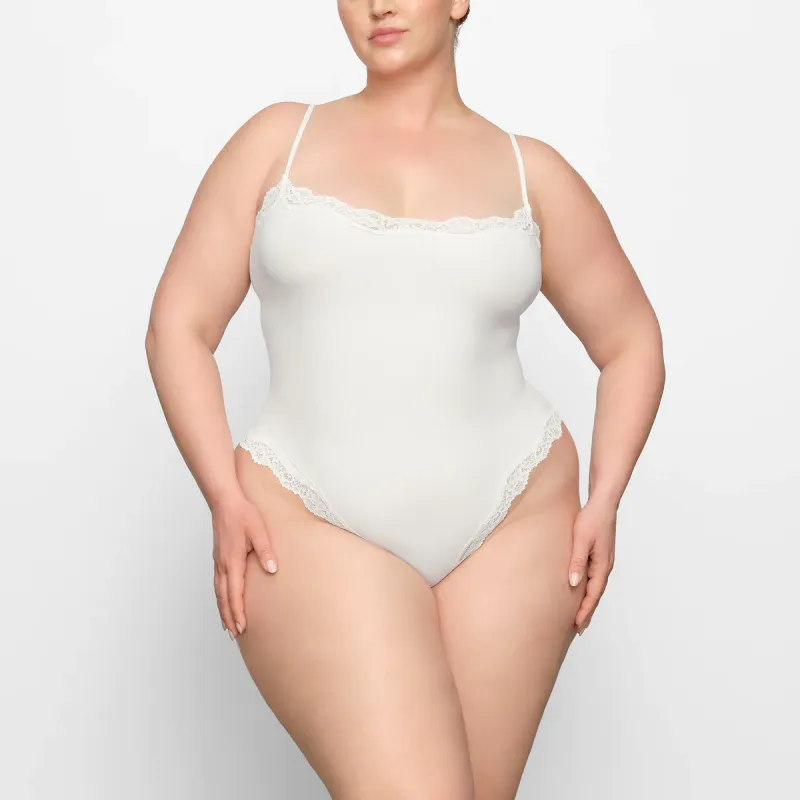 SKIMS FITS EVERYBODY CORDED Кружево CAMI BODYSUIT Комбинезон Женские Мраморный Белый