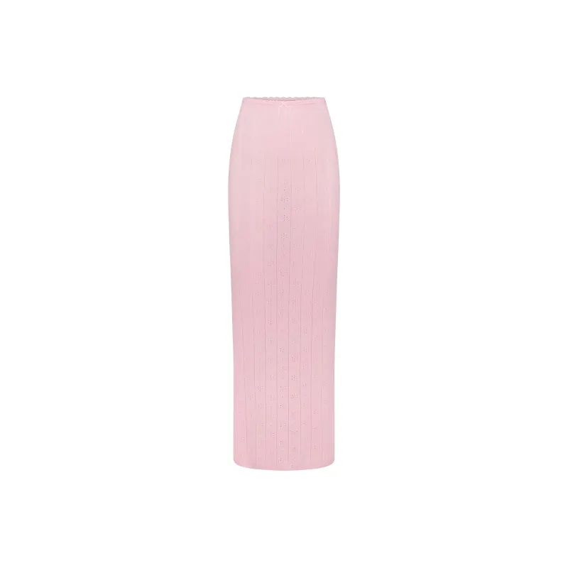 SKIMS FW24 Fake Day Collection Свитер POINTELLE Длинная Юбка KNIT Длинная Юбка Женская Малыш Розовый Светло-Розовый