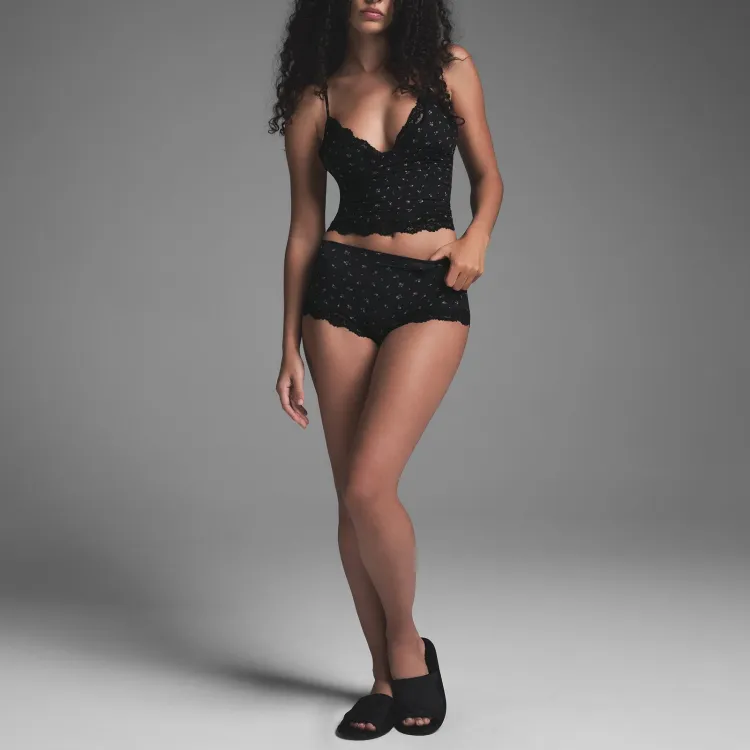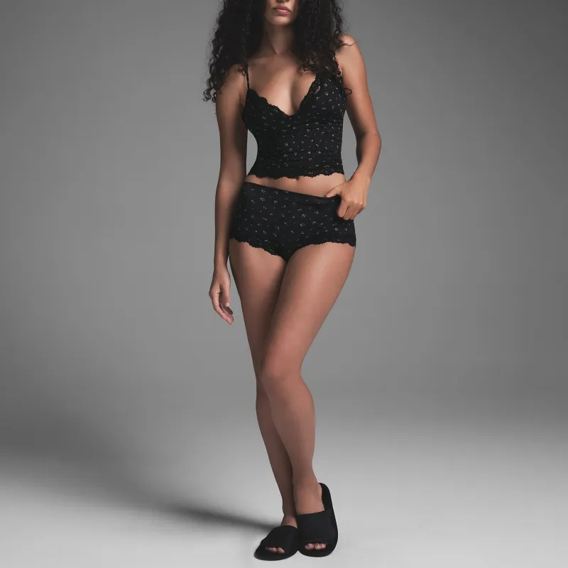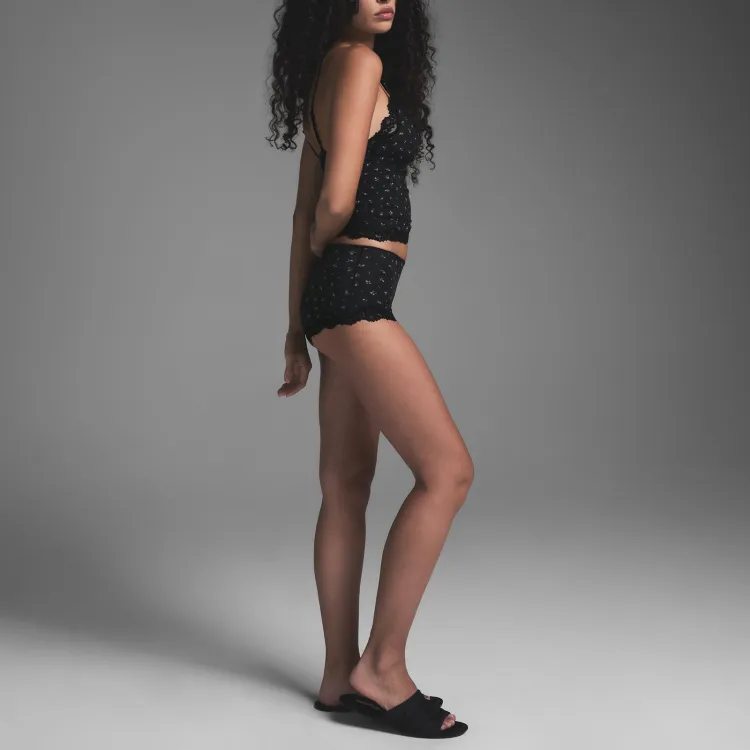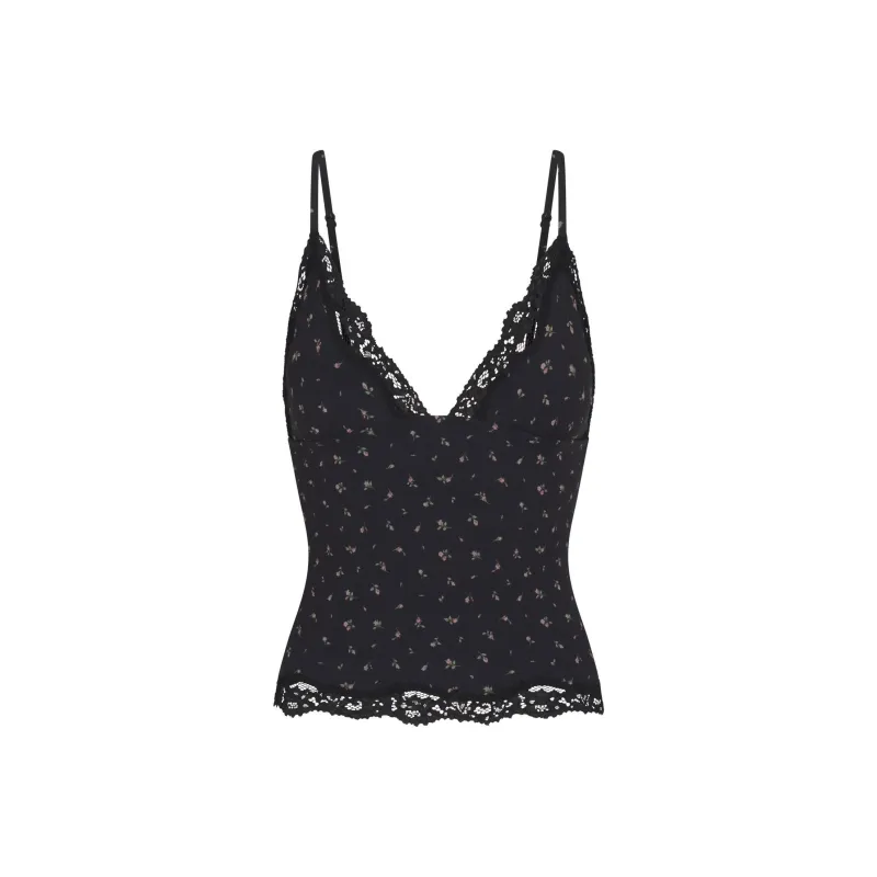 SKIMS FW24 FITS EVERYBODY Кружево Треугольник CAMI Топ на бретелях Женские Оникс ROSEBUD Принт Агатовый принт с бутонами роз