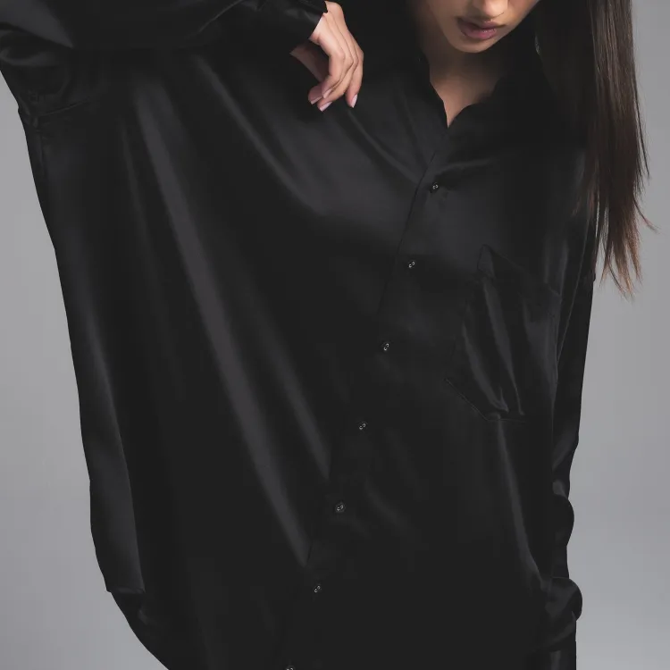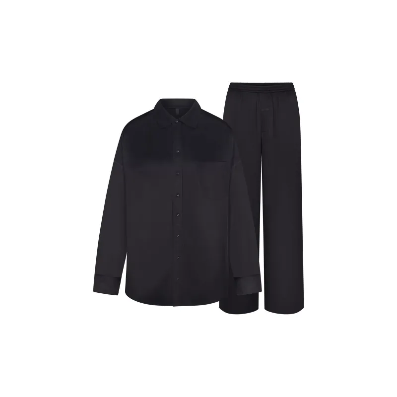 SKIMS Holiday Collection FW24 Silk OVERSIZED Long SLEEP Set Pajama Set Women's Onyx Onyx
