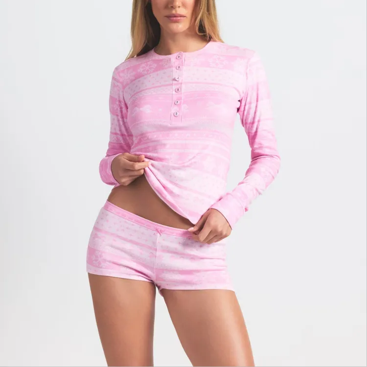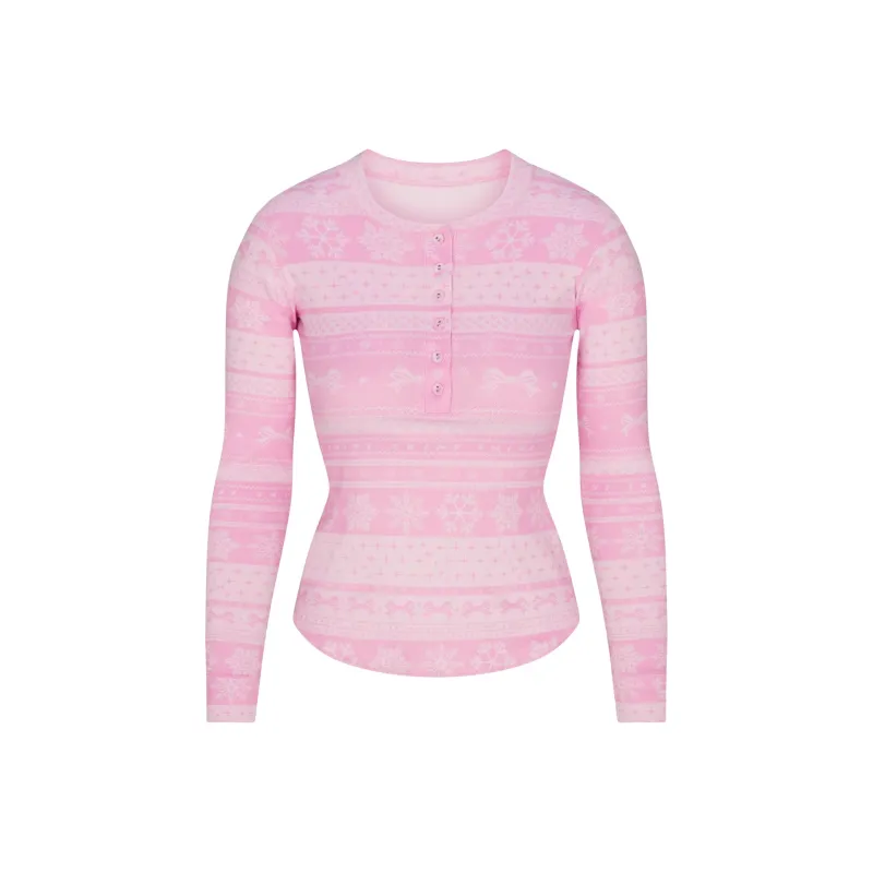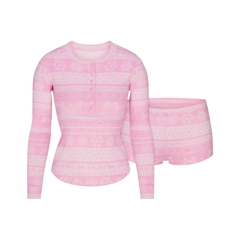 SKIMS Праздника Fw25 Логотип Плюшевый POINTELLE Henley Комплект Повседневный Костюм Женские