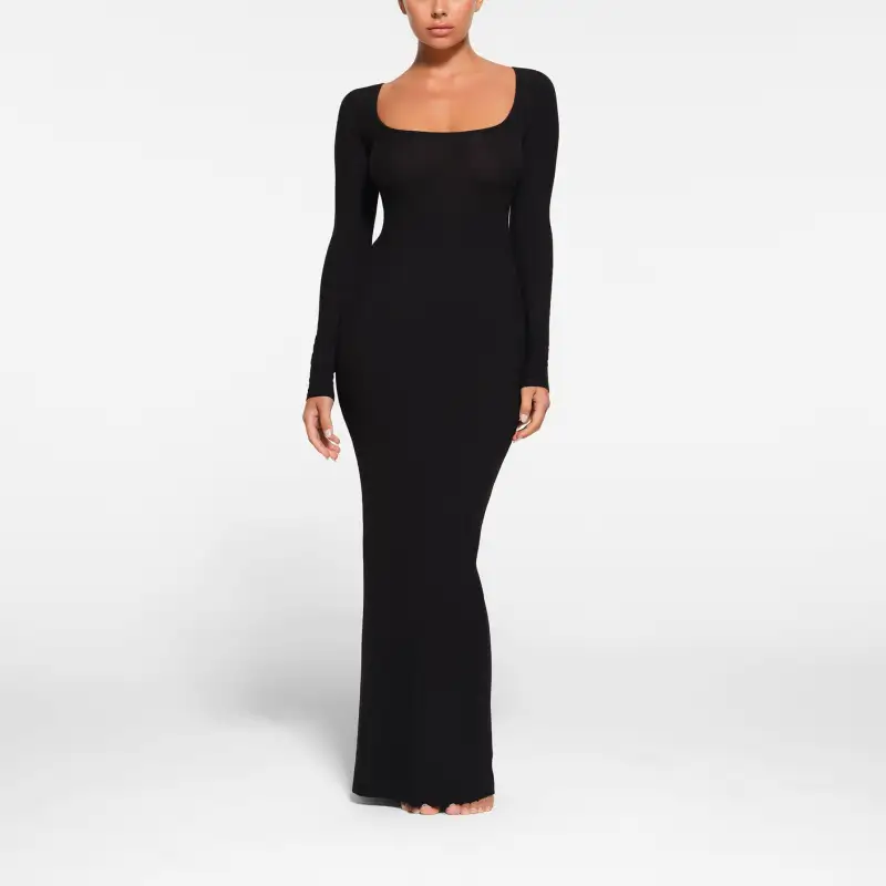 SKIMS Мягкий Lounge Маленький Длинный рукав Платье Длинный рукав Платье Женские Onyx Onyx