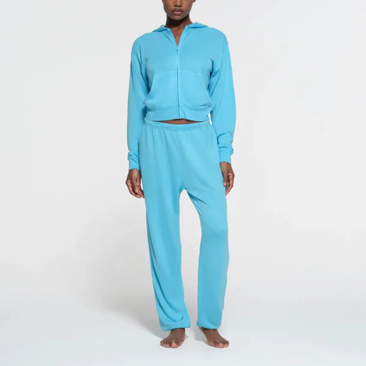 SKIMS Модал French Terry Классический ZIP UP Толстовка Свитшот Женские Циановый Циановый
