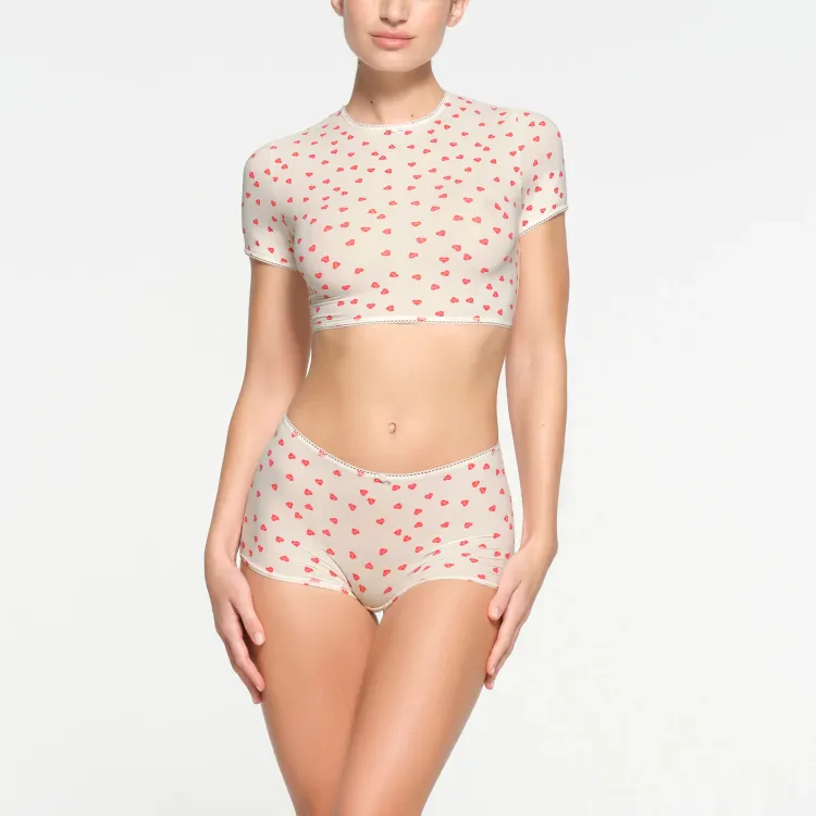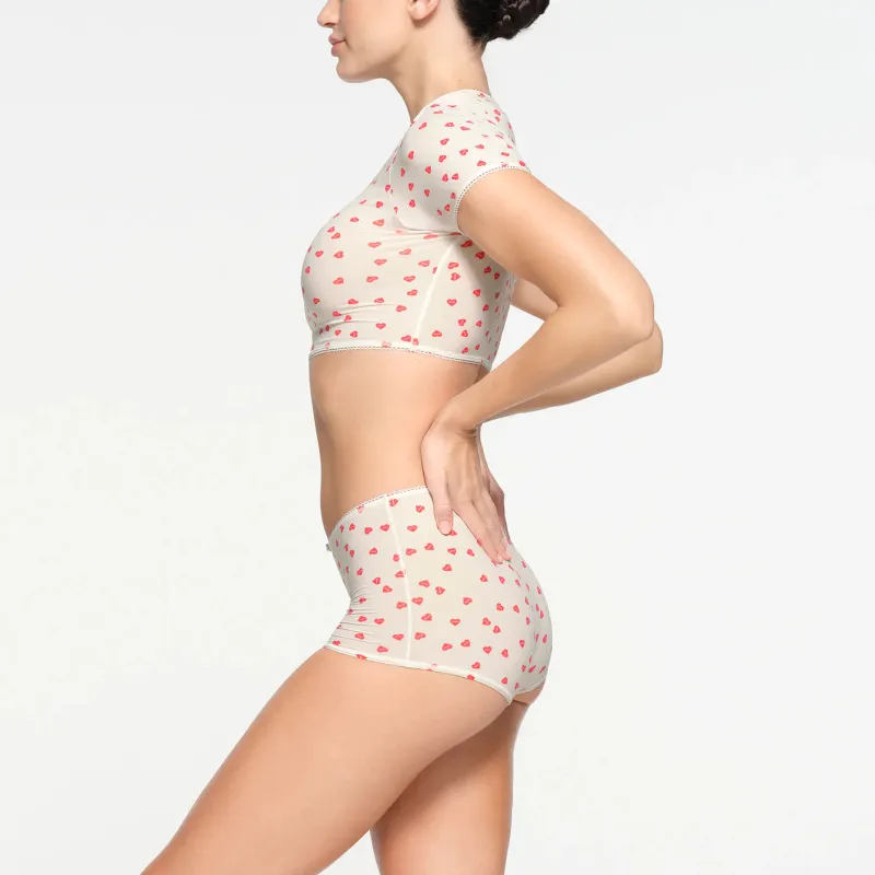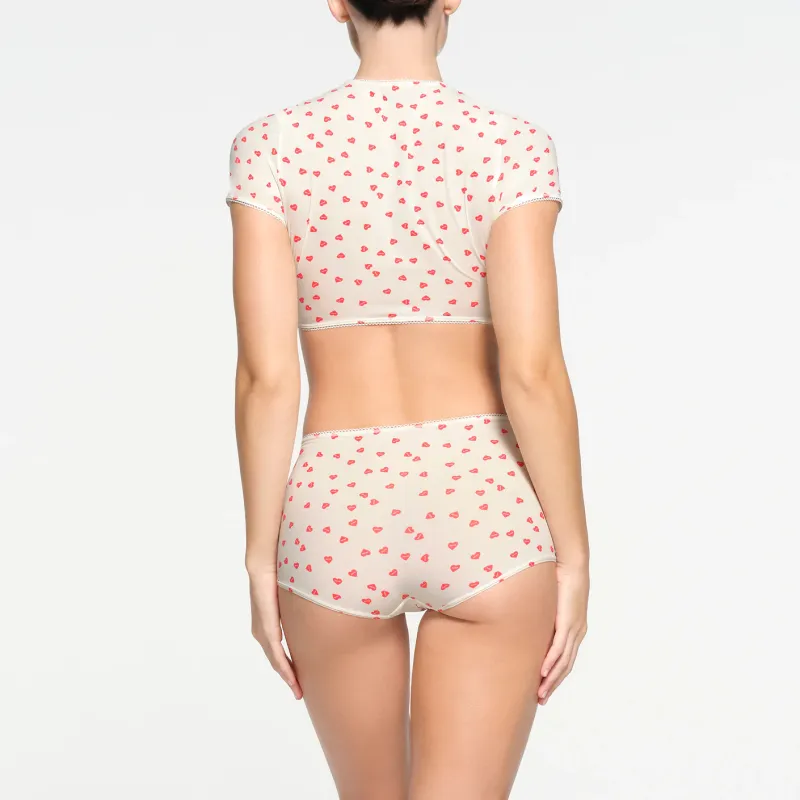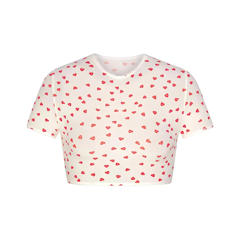 SKIMS Стандартная T-рубашка Женская Рубин Сердце с принтом