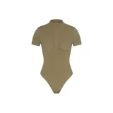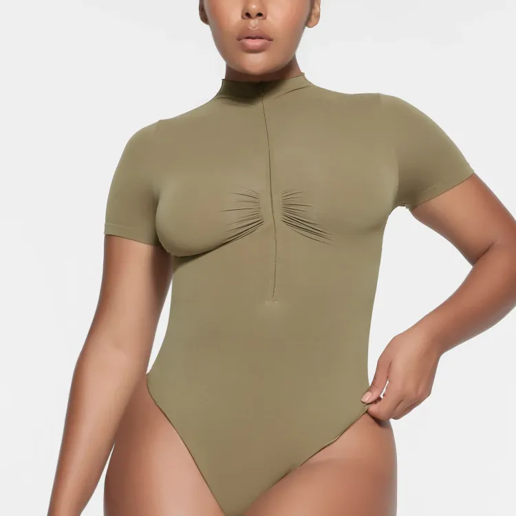 SKIMS Бесшовный SCULPT ZIP Передняя часть T-Рубашка Стринг Комбинезон BODYSUIT Женские ARMY Армейский зеленый