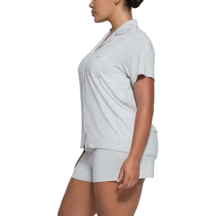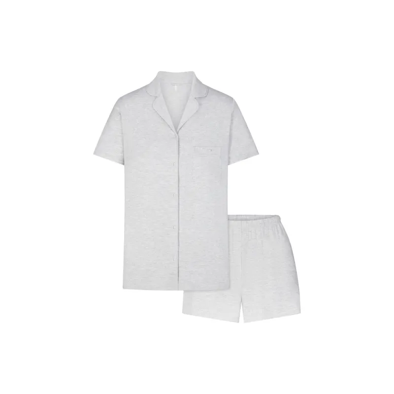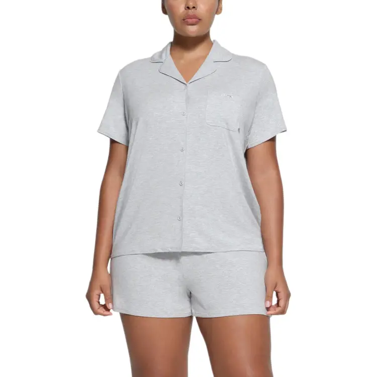 SKIMS Сон Короткий рукав пуговица вверх комплект пижам комплект женский светло-меланжевый серый светло-пшеничный серый
