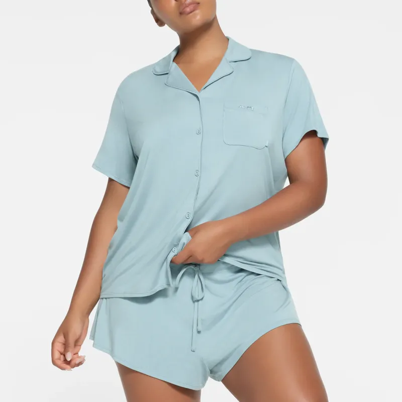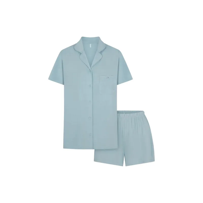 SKIMS Сон Короткий рукав пуговица вверх комплект пижам комплект женский небесно-голубой