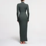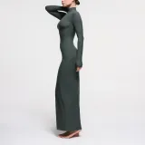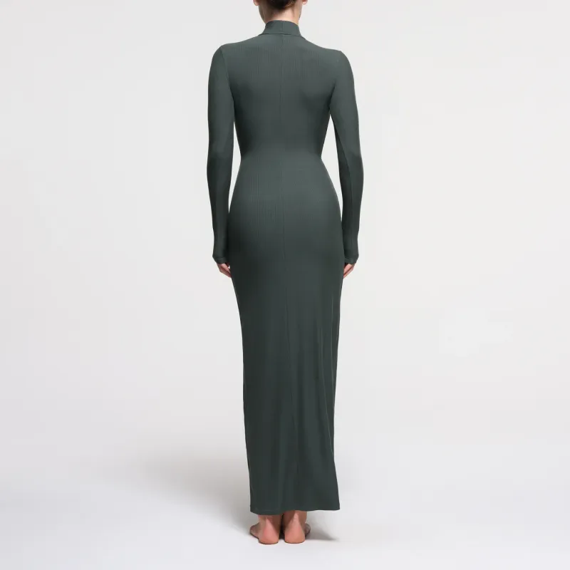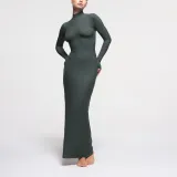 SKIMS Мягкий Lounge Водолазка Длинное Платье Длинное Платье с Длинными Рукавами Женское Глубокое море Цвет