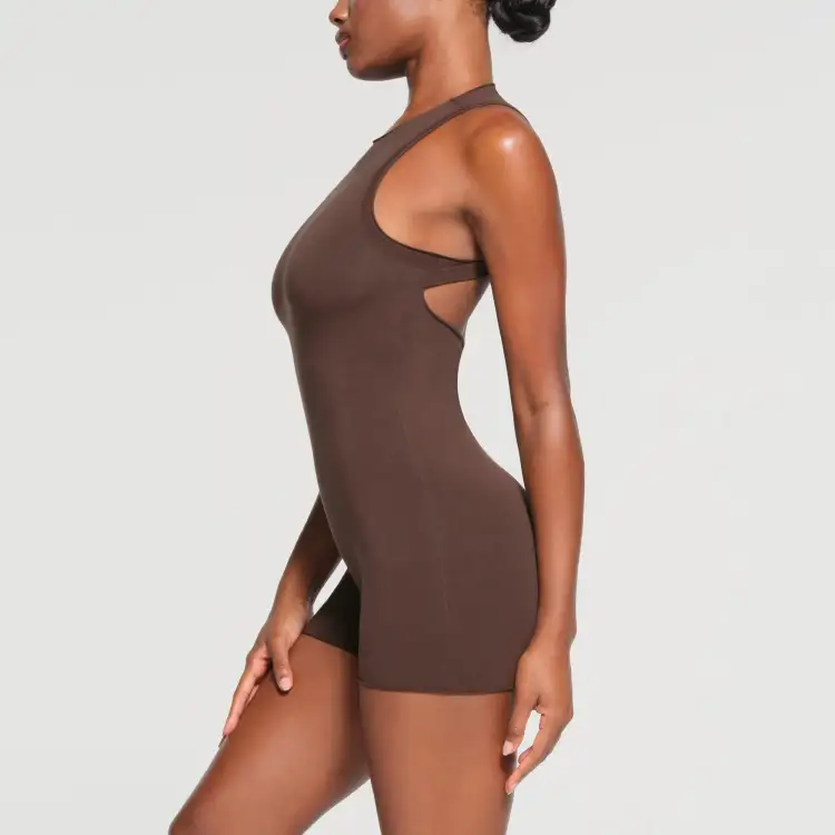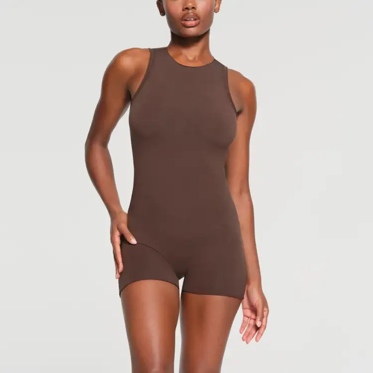 SKIMS SS24 RAW Edge ONESIE Комбинезон Женские Эспрессо Темный Кофейный Цвет
