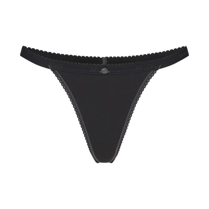 SKIMS SS25 Легкий хлопок LOGO PICOT Стринг Трусы Женские 1 упаковка SOOT Дымчатый серый