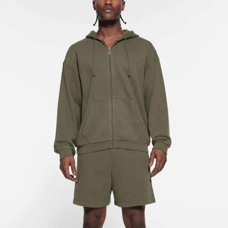 SKIMS Махровый MENS RELAXED ZIP UP HOODIE Мужская Military Army Зеленый