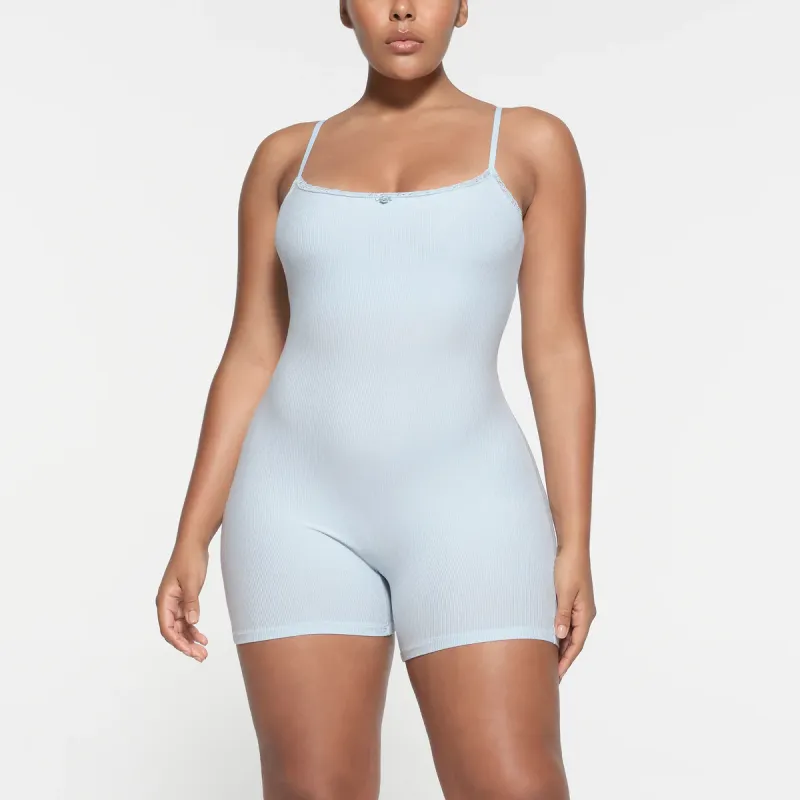 SKIMS Wedding Dress Series Мягкий Lounge Lace Onesie Комбинезон Женские Celeste Небесно-голубой