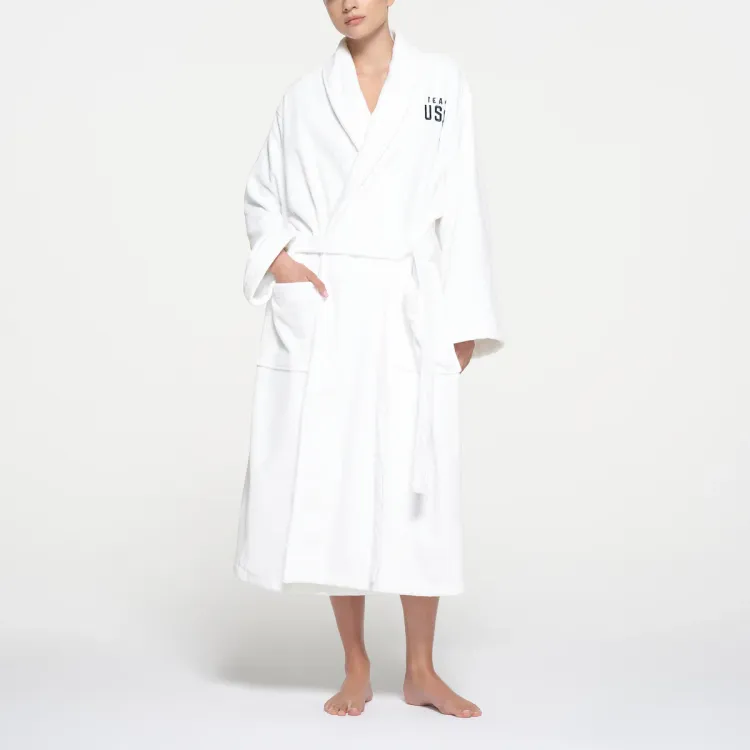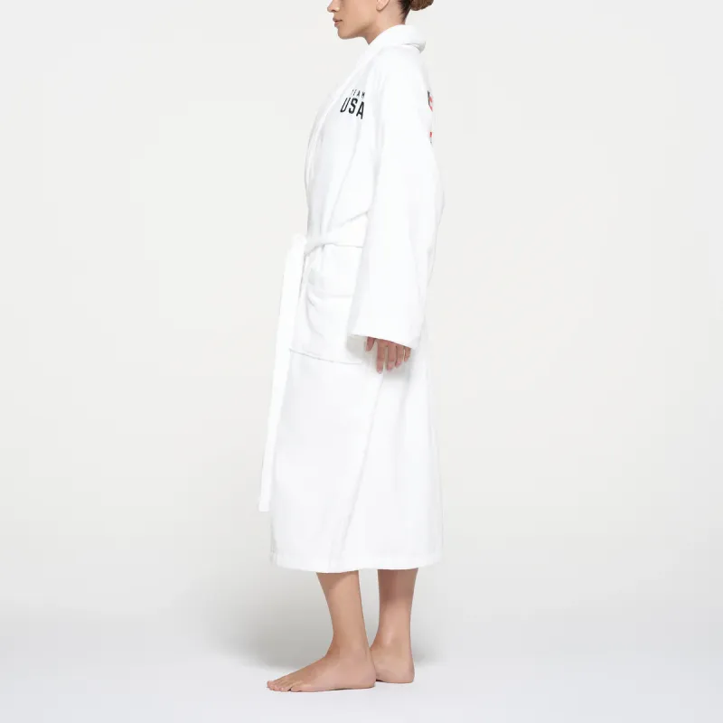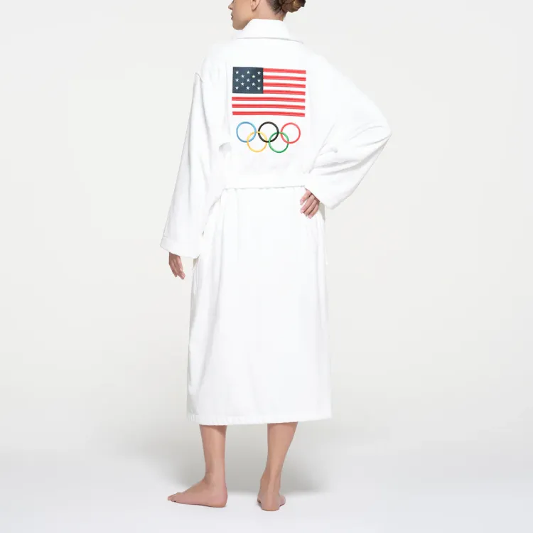 SKIMS x MEIGUOAOYUNDUI LIANMINGKUAN SS24 FOR Команда США Махровый Олимпийский Унисекс ROBE Сон Robe Унисекс Белый Белый