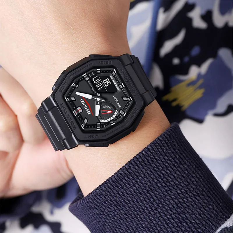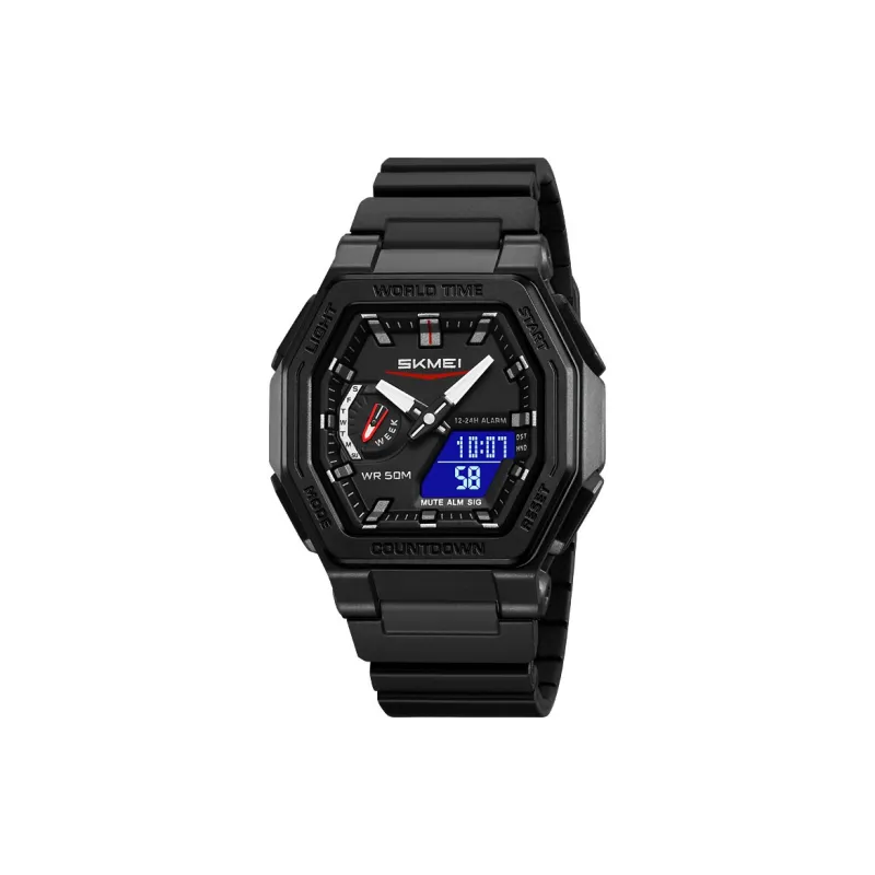 SKMEI Электронный механический TPU ремешок Часы Мужские Черный циферблат