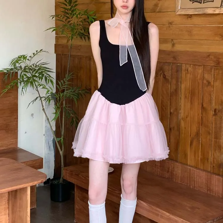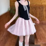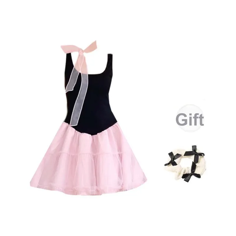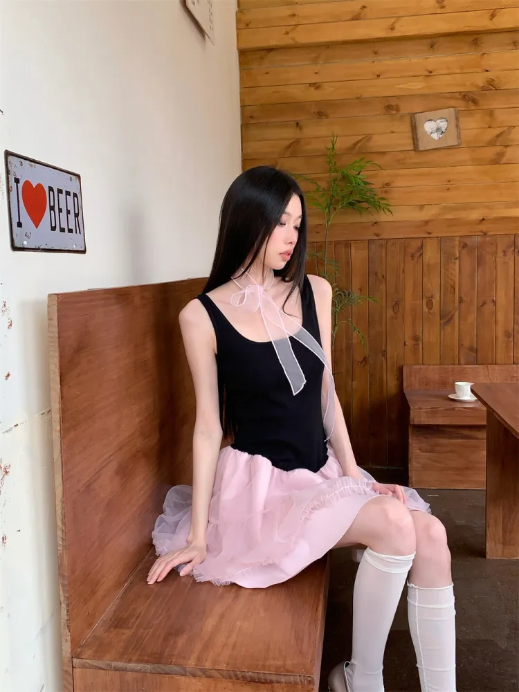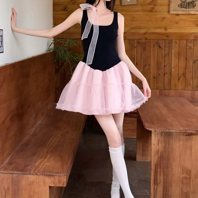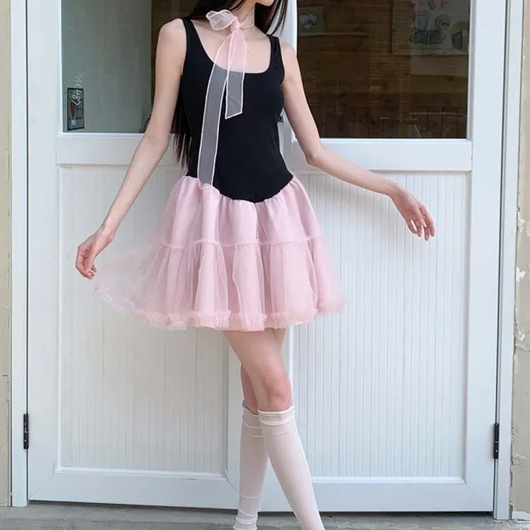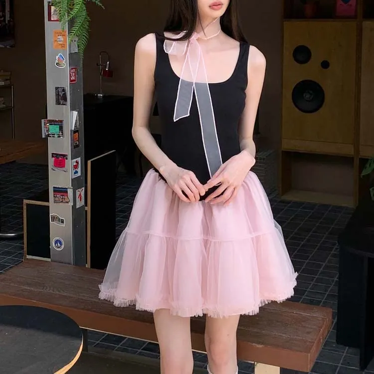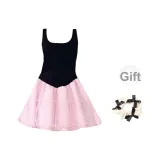 Платье без рукавов женское черное розовое многоцветное + лента + бант + резинка для волос + подарки