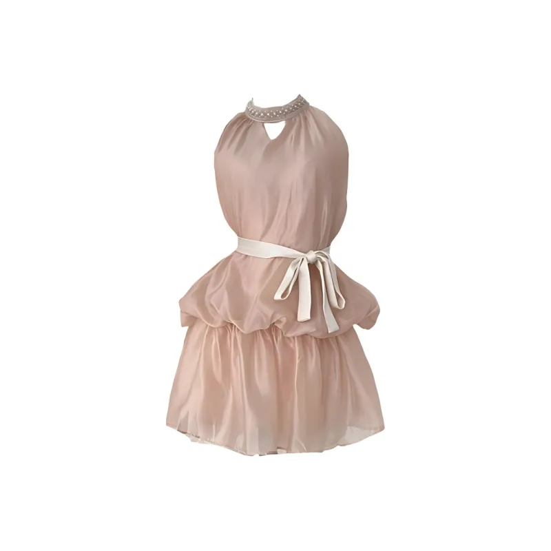 Мелкие блестки, нежно-розовый, женские платья без рукавов