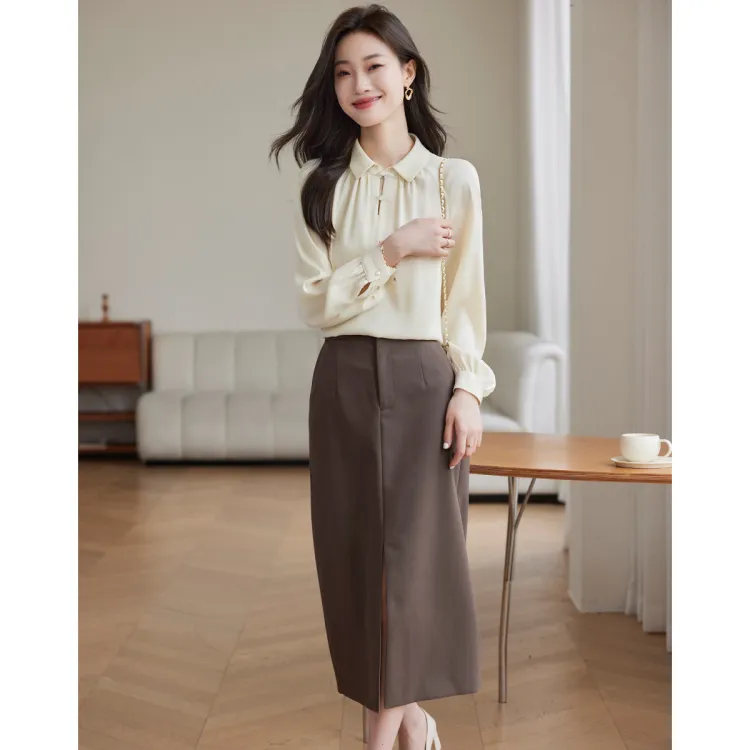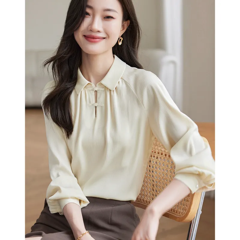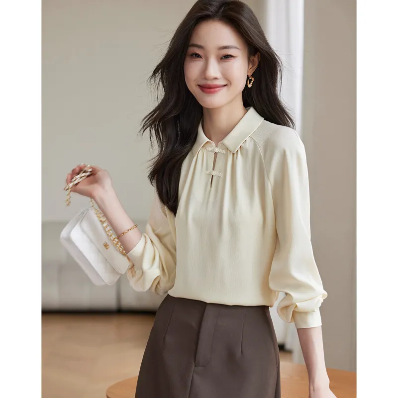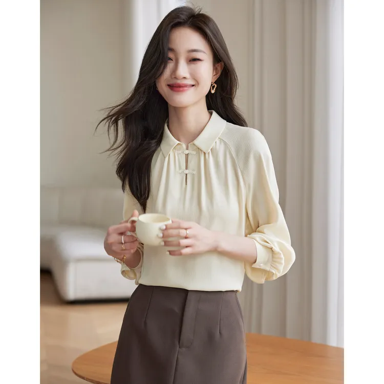 SLLSKY Кремовый Абрикос Женские Рубашки