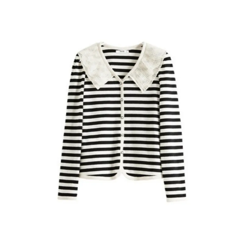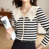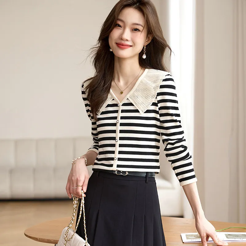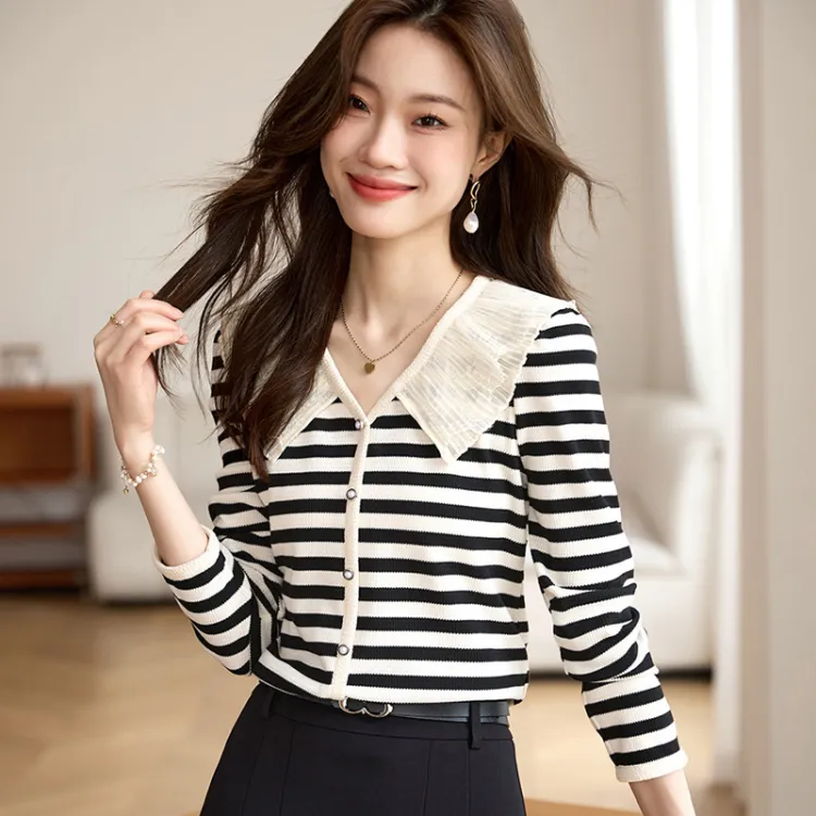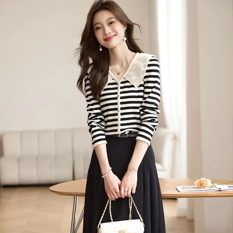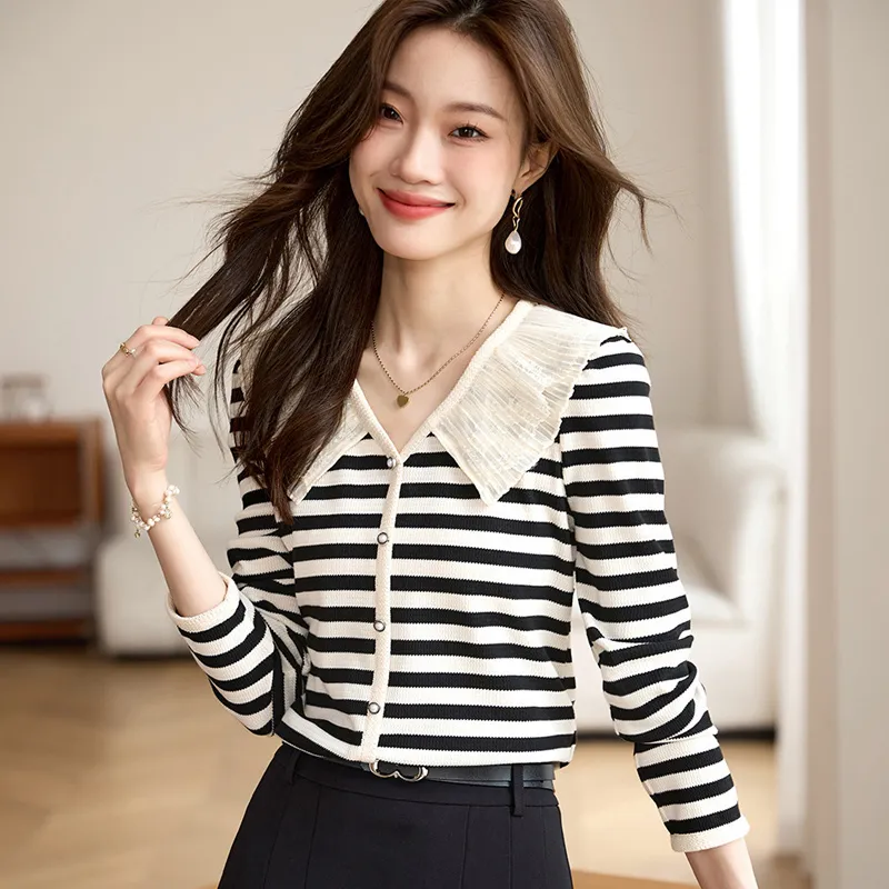 SLLSKY Абрикос с Черными полосами Женские T-рубашки