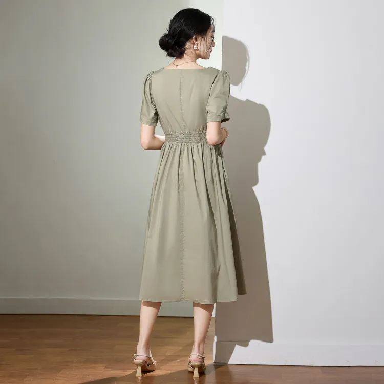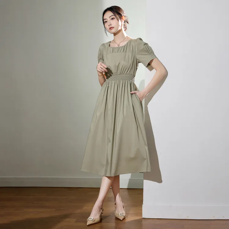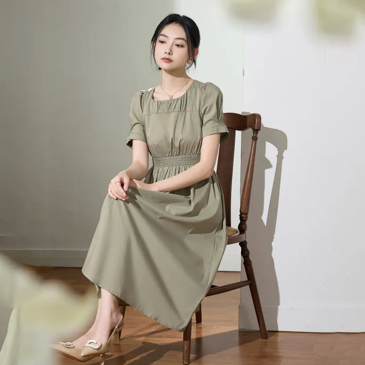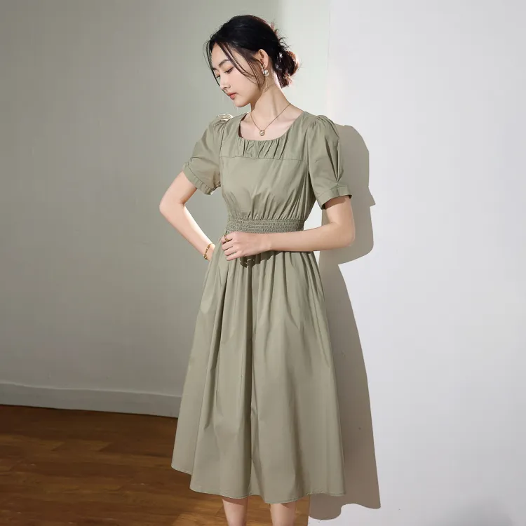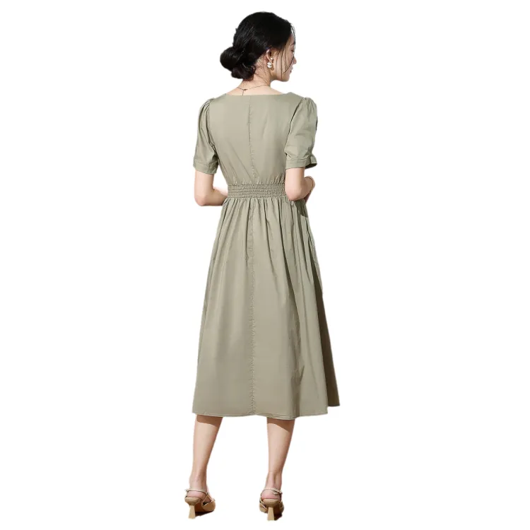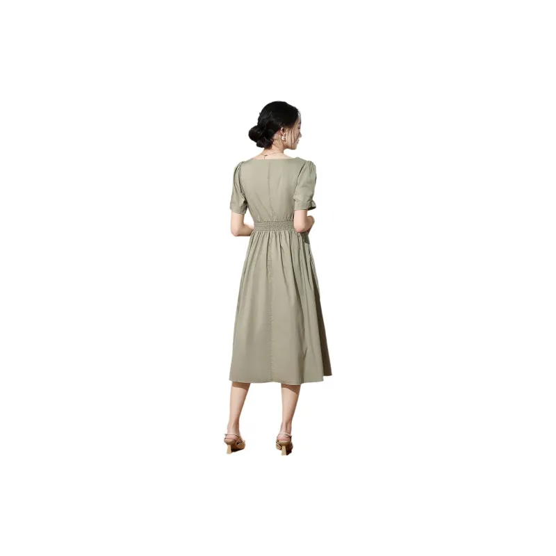SMEN Короткий рукав Платье Женское Зеленое