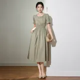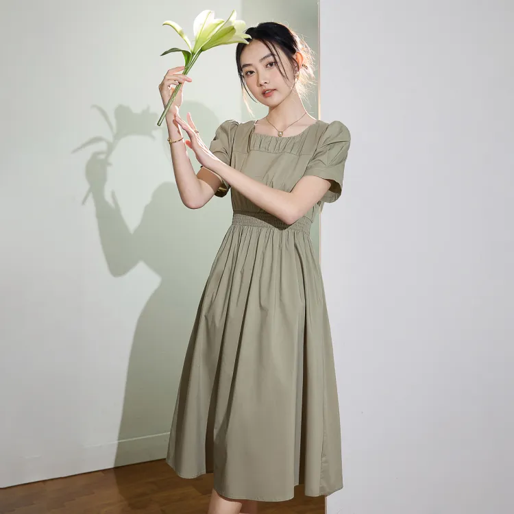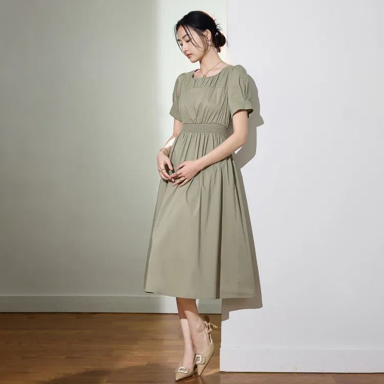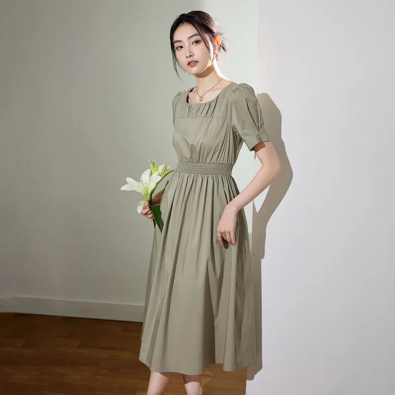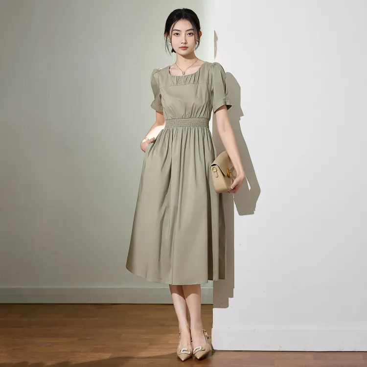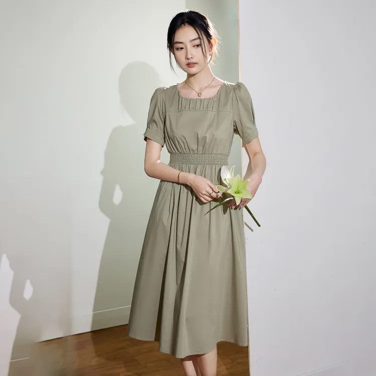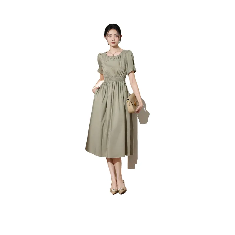 SMEN Короткий рукав Платье Женское Зеленое