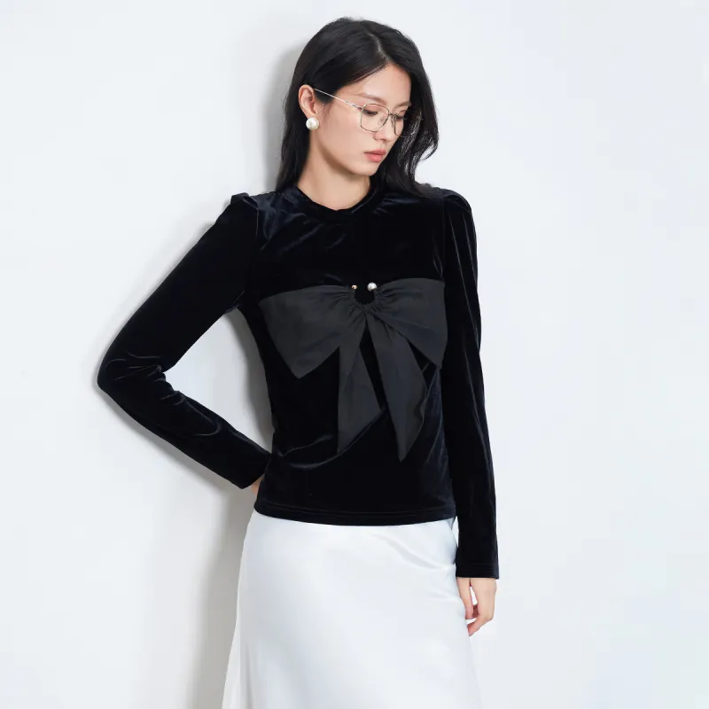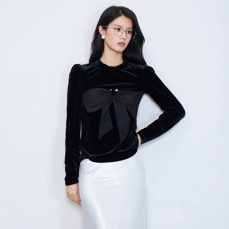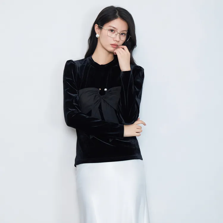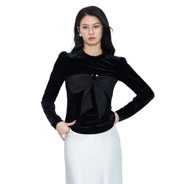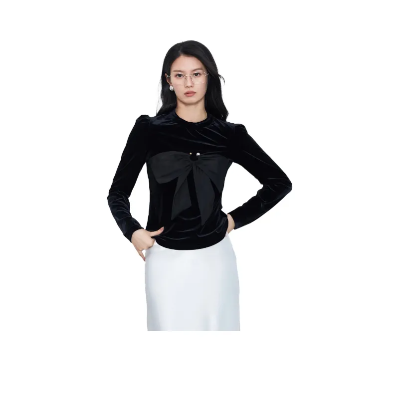 SMEN Зимний Вельветовый Топ Женский Черный