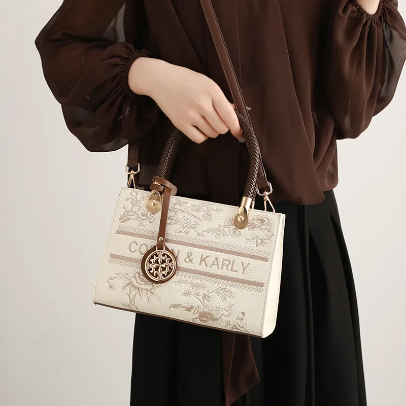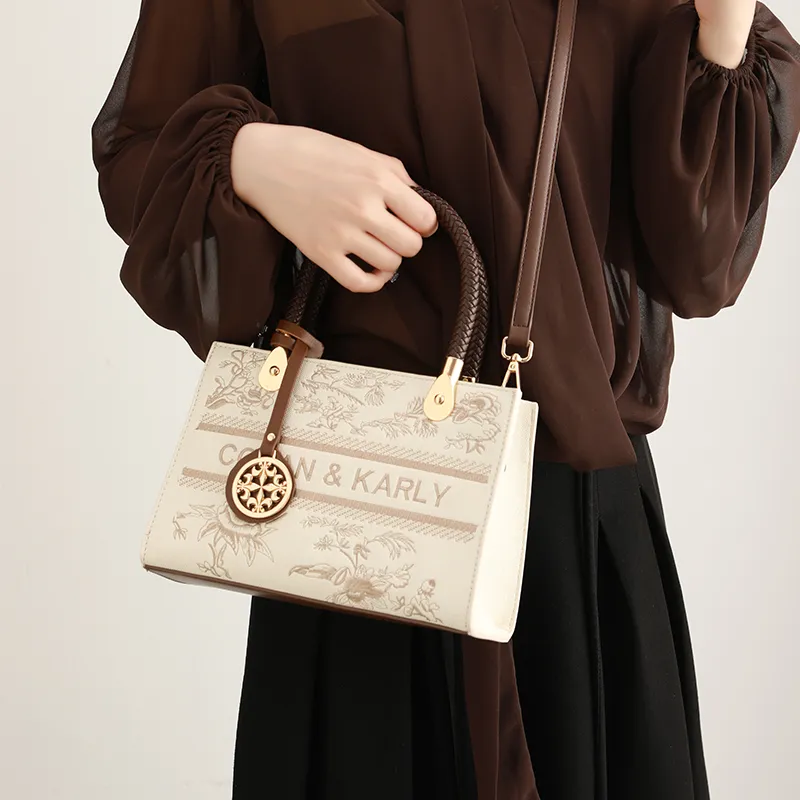 SMILE FOCUS Микрофибра Синтетическая Кожа Сумка через плечо Сумка для ноутбука Женская Экрю