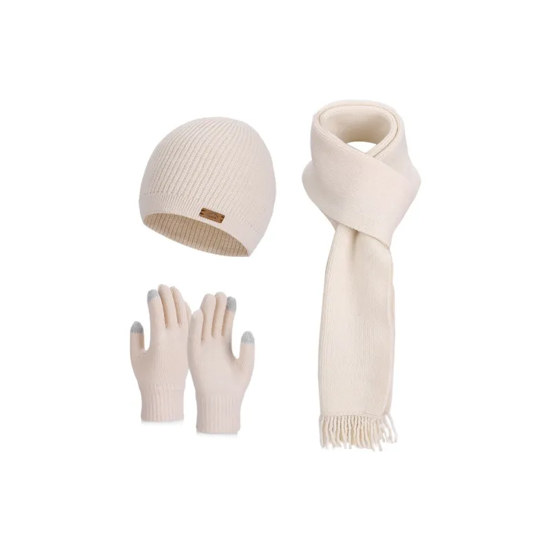 Трехкомпонентный комплект [Шарф + Шапка и Кепка + Перчатка] - Бежевый
