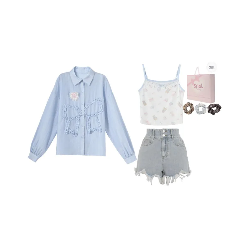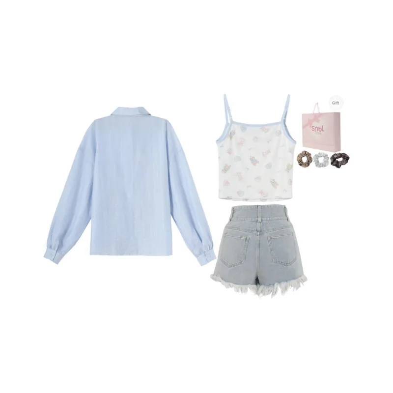Цвет:Рубашка + Топ на бретелях + Джинсы