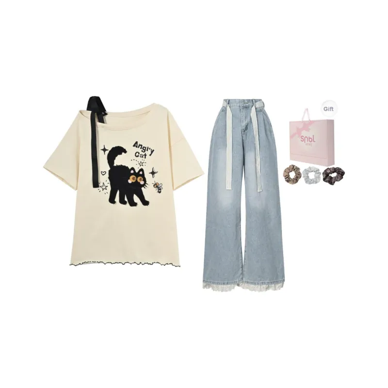 SNBL Повседневный костюм женская футболка + джинсы