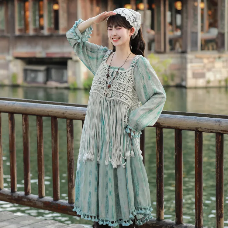 SNBL Длинное платье с длинным рукавом женское зеленое