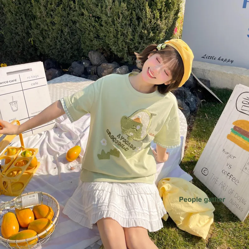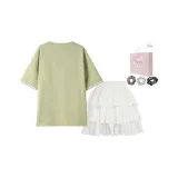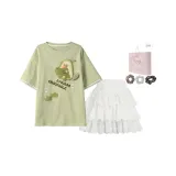 Цвет:Зеленая футболка + белая юбка