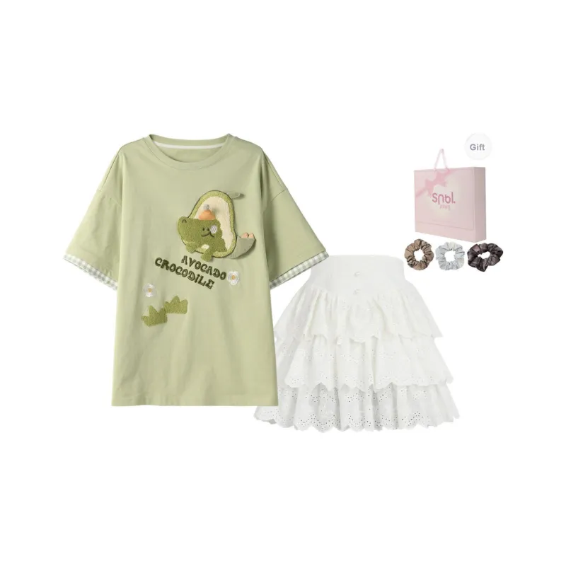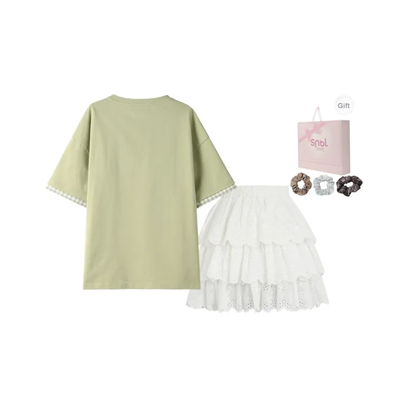 SNBL Комплект с юбкой Женская Зеленая T-рубашка + Белая Юбка