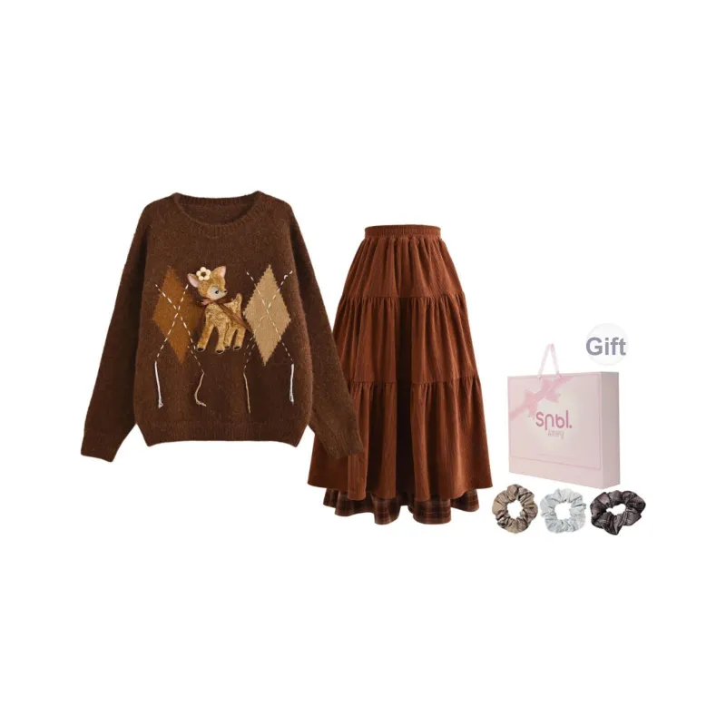 Комплект:Свитер + Юбка (В комплекте с коробкой, резинка для волос)