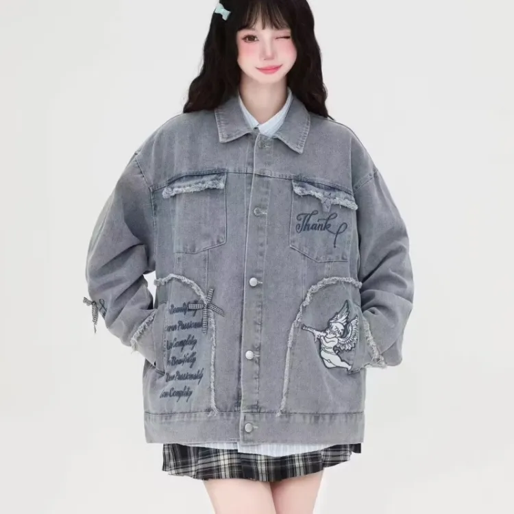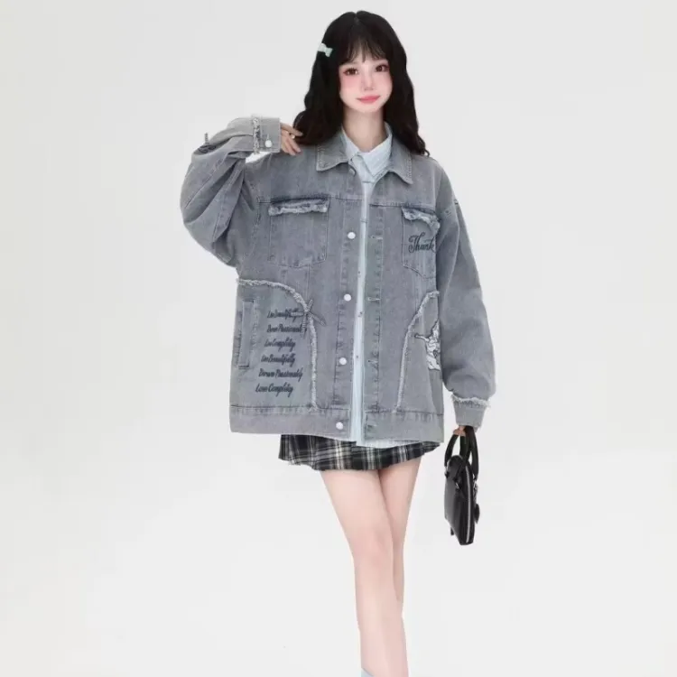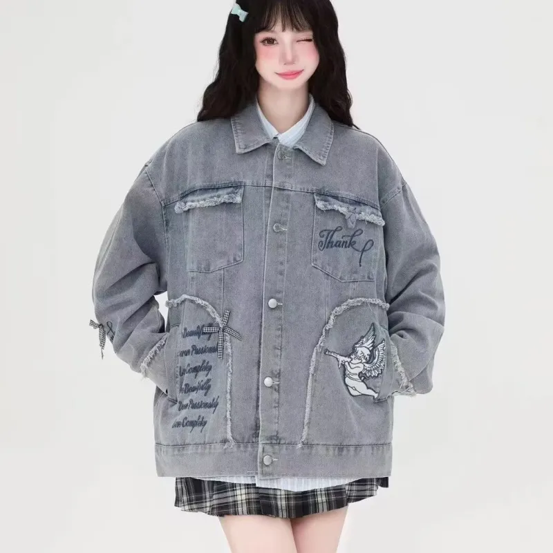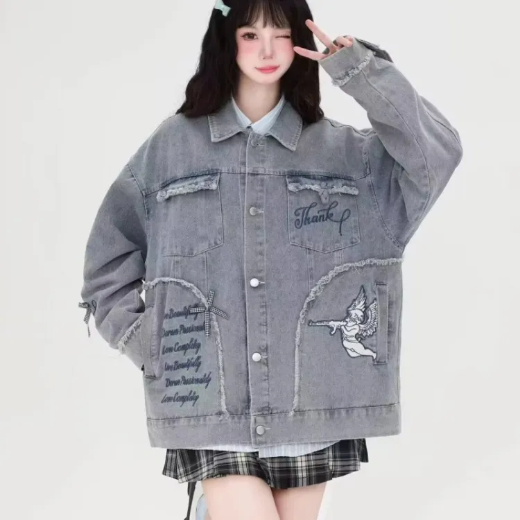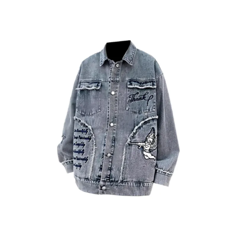 SNEIKLAU Синий Буква Вышивка С принтом Унисекс Куртки