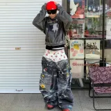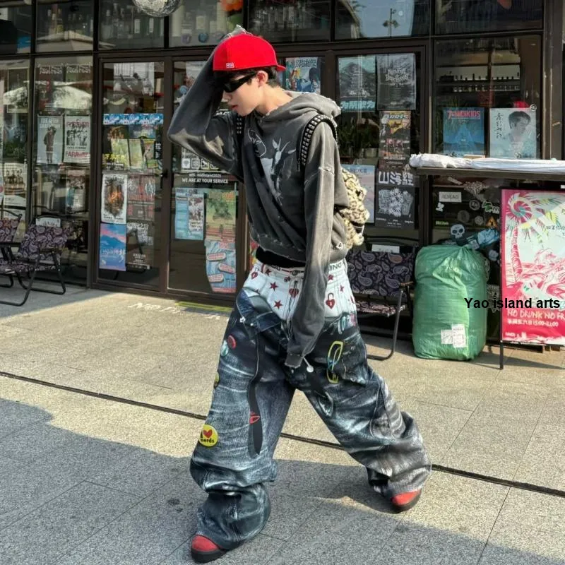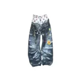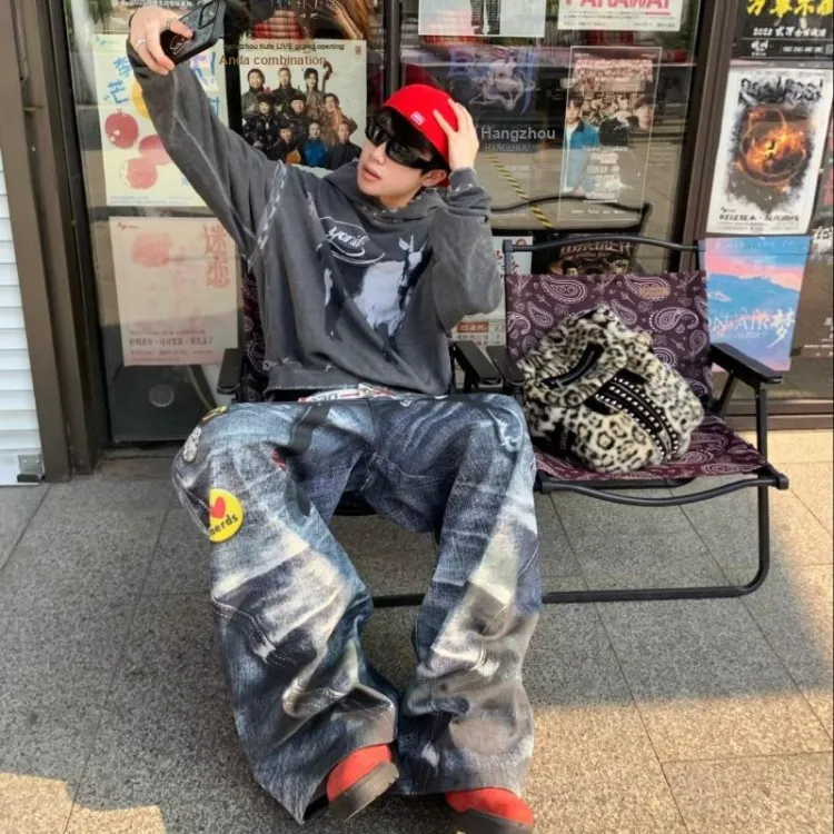 SNEIKLAU Синий [Mock Два предмета с плиссировкой] Унисекс Джинсы