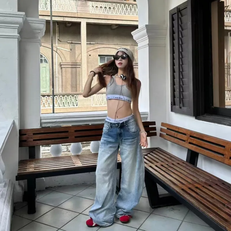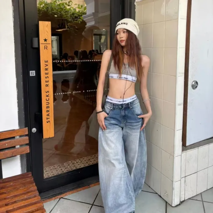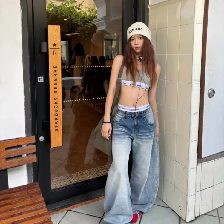 SNEIKLAU Светло-синие унисекс джинсы