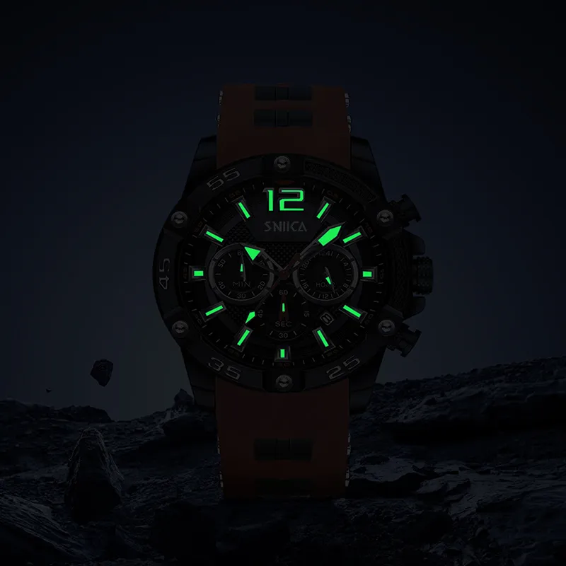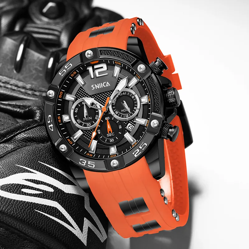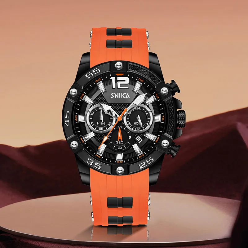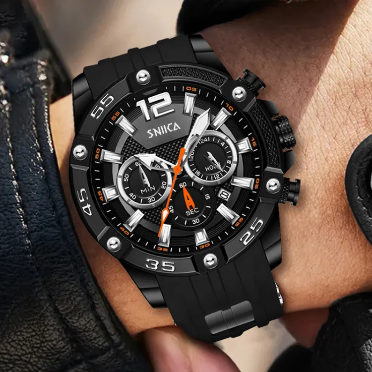 SNIICA Classic Collection Маленький Круглый Часы Кварцевый Механизм Резиновый Ремешок Черный Циферблат Мужские Часы