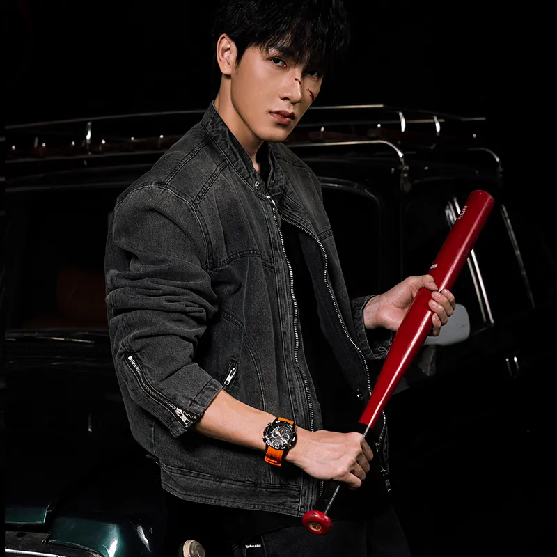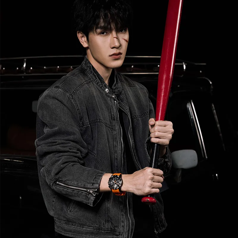 Чёрный корпус - оранжевый ремешок