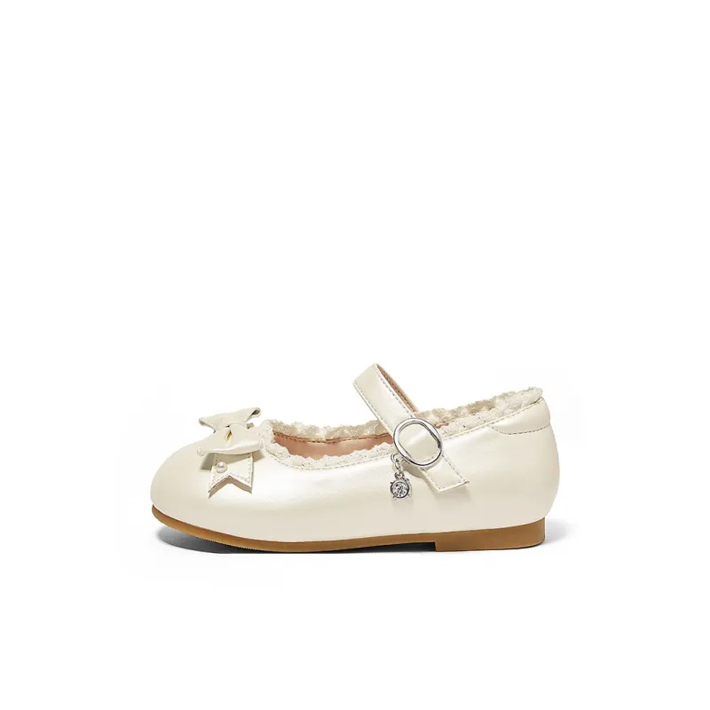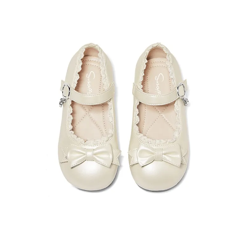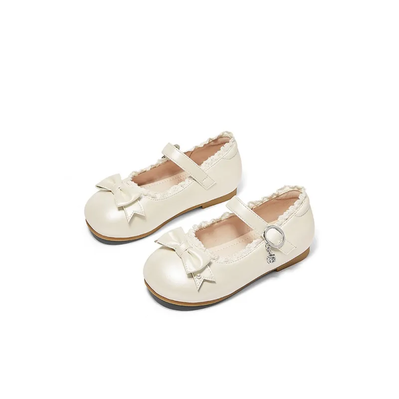 Snoffy противоскользящие и дышащие кожаные туфли кремово-белого цвета для детей