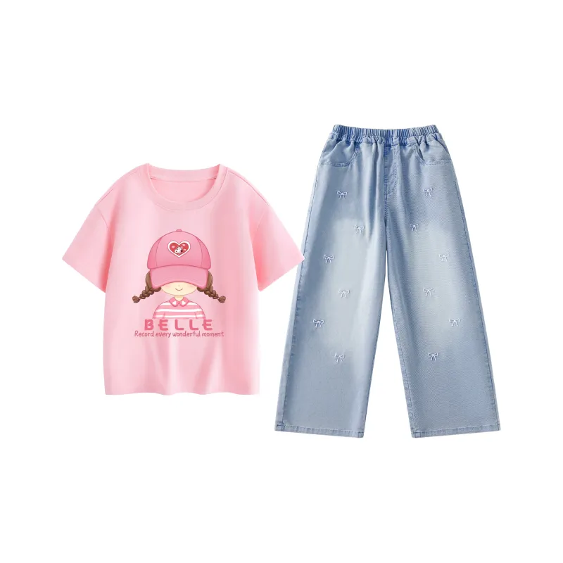 [Модный Универсальный Комплект Одежды] Белый/Белль Розовый Девушка - Светло-Синий