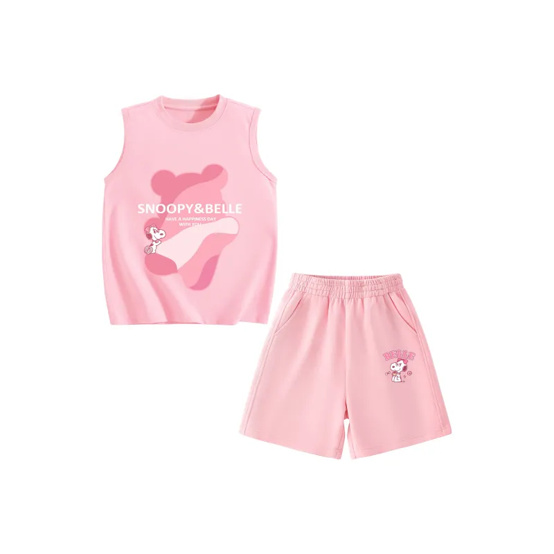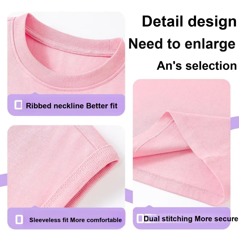 [Девочки 100% хлопок Майка Комплекты Одежды] Розовый Разрисованный Белль