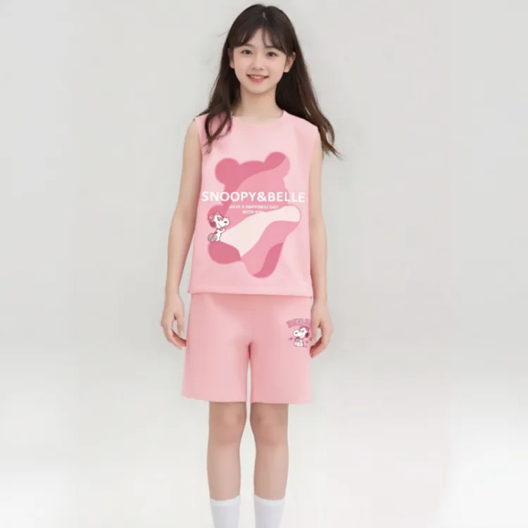 [Девочки 100% хлопок Майка Комплекты Одежды] Розовый Колокол Розовый Девушка