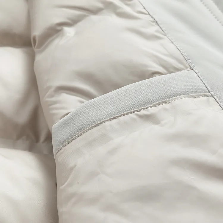 Ткань/Вторичный материал: 100% полиэстер (за исключением пленки), Подкладка: 100% полиэстер, Наполнитель оболочка: 100% полиэстер, Наполнитель: утиный пух, Содержание пуха: 90%, Частичный наполнитель: 100% полиэстер