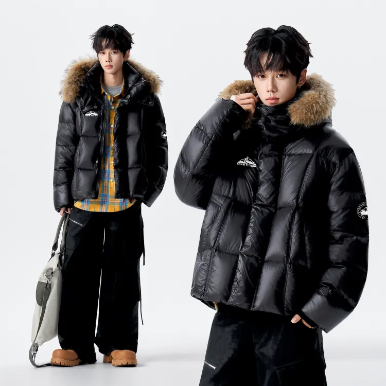Ткань: 100% полиамид Подкладка A: 100% полиэстер Подкладка B: 100% полиэстер Ткань подкладки: 100% полиэстер Мех шапки: шкура енотовидной собаки Наполнитель: 90% утиный пух Частичный наполнитель: 100% полиэстер