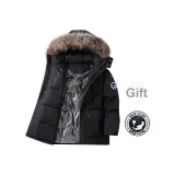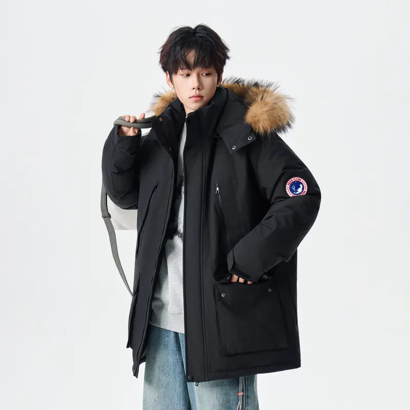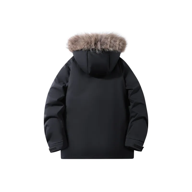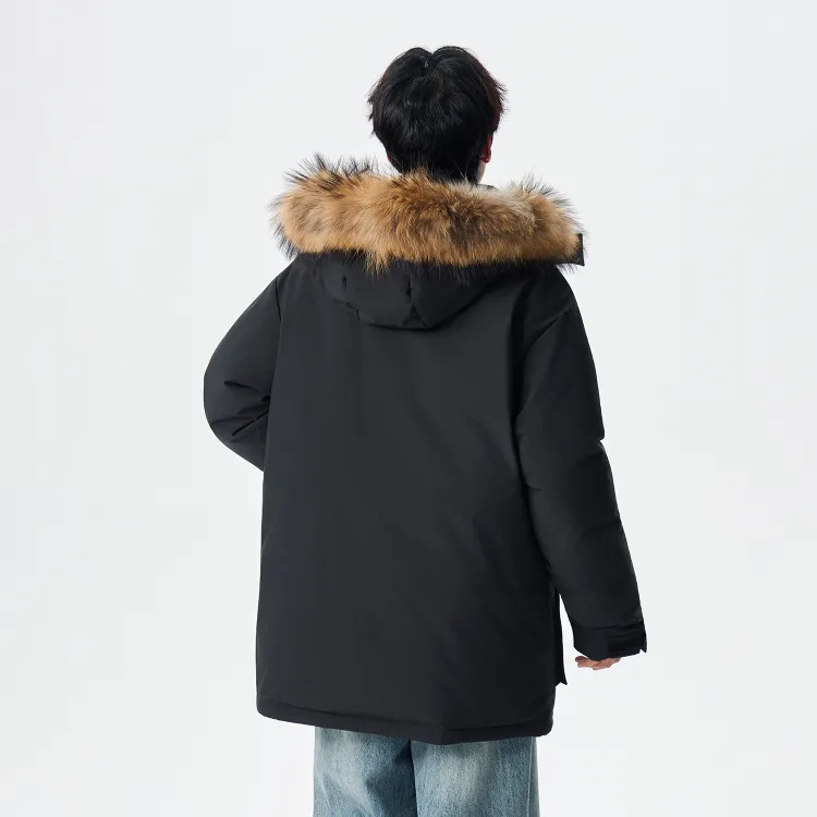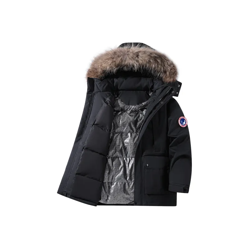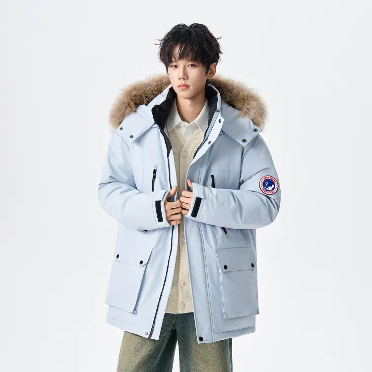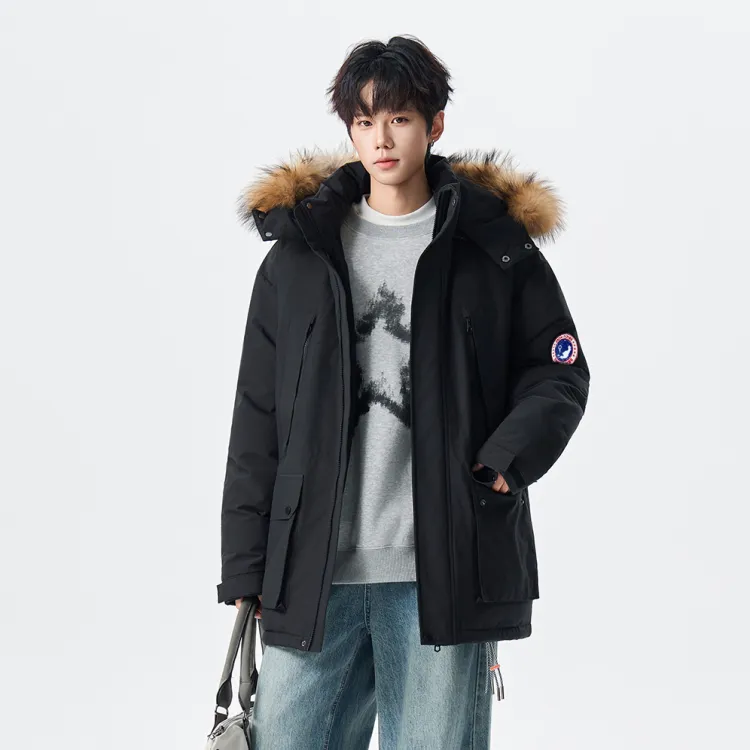 Ткань/Вторичная подкладка: 100% полиэстер Подкладка A: 100% полиэстер Подкладка B: 100% полиэстер Ткань подкладки: 100% полиэстер Воротник из меха: 100% шкура енота Наполнитель: 90% утиный пух, 10% другие Частичный наполнитель: 100% полиэстер